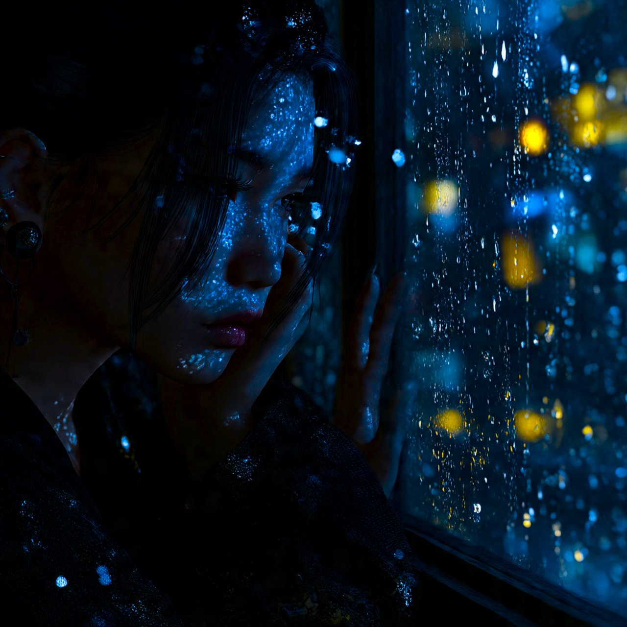 The next transmission arrives in a downpour so heavy the gutters outside overflow like rivers. He sits by the window, fingertips cold against the glass, and receives a flood of memory from her: