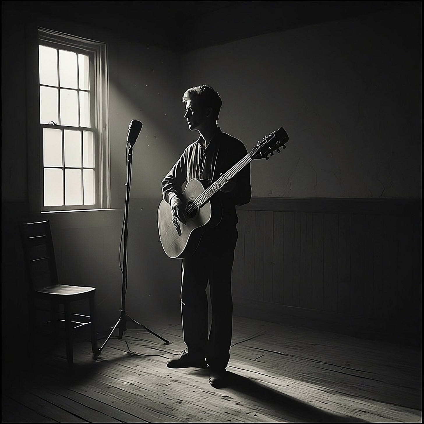 I kept the songs intact. The lyrics, the progressions, the structures, a fusion of two vibes and decades fifty years apart. I didn’t want covers. I wanted the same songs as new but in old skins and bones he might have worn.