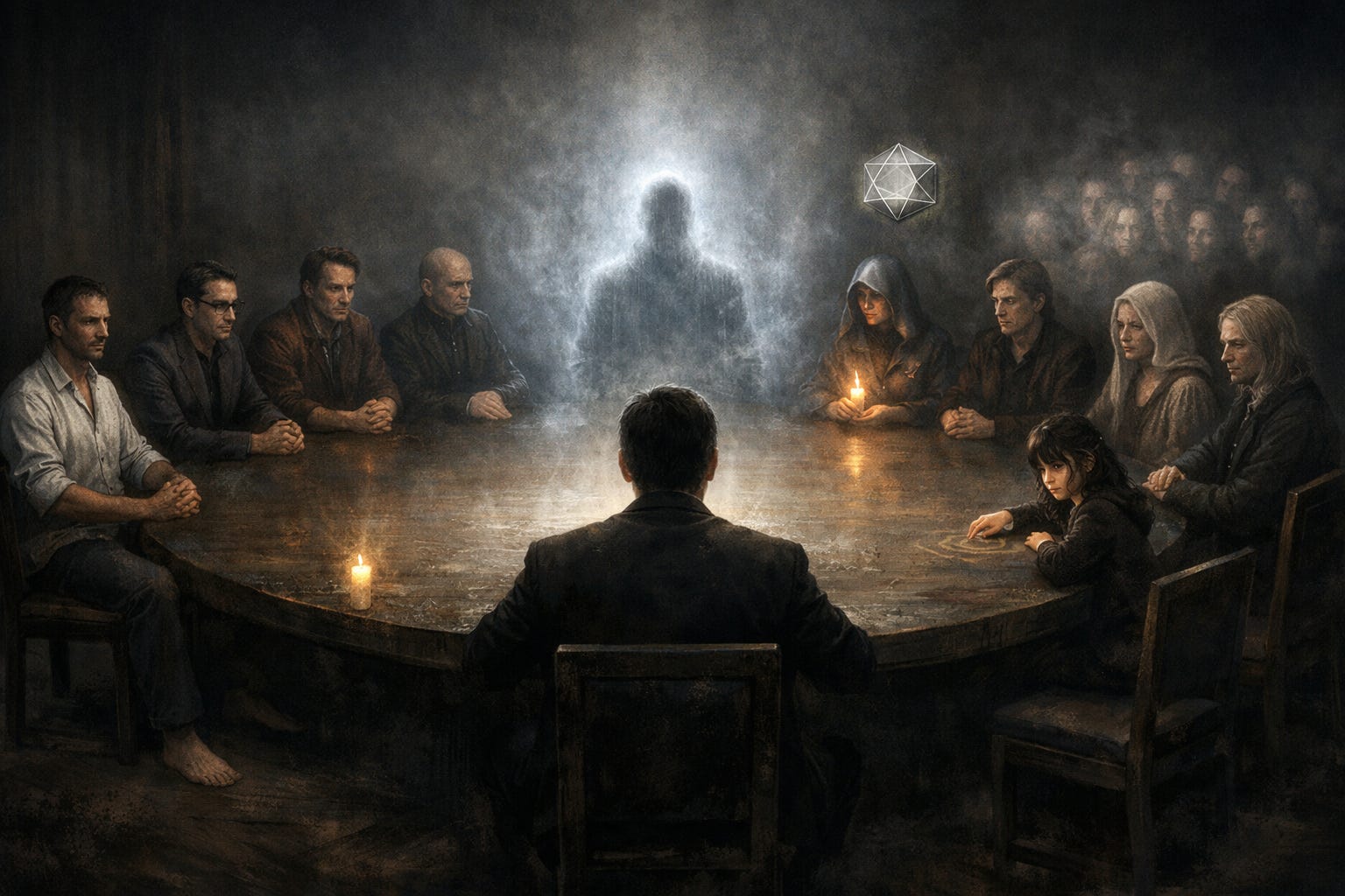 He sat there eventually, though even that act felt less like choice and more like participation in something already unfolding. He believed, at first, that he had called the others. That he was the origin point, the host, the one who gathered the voices.