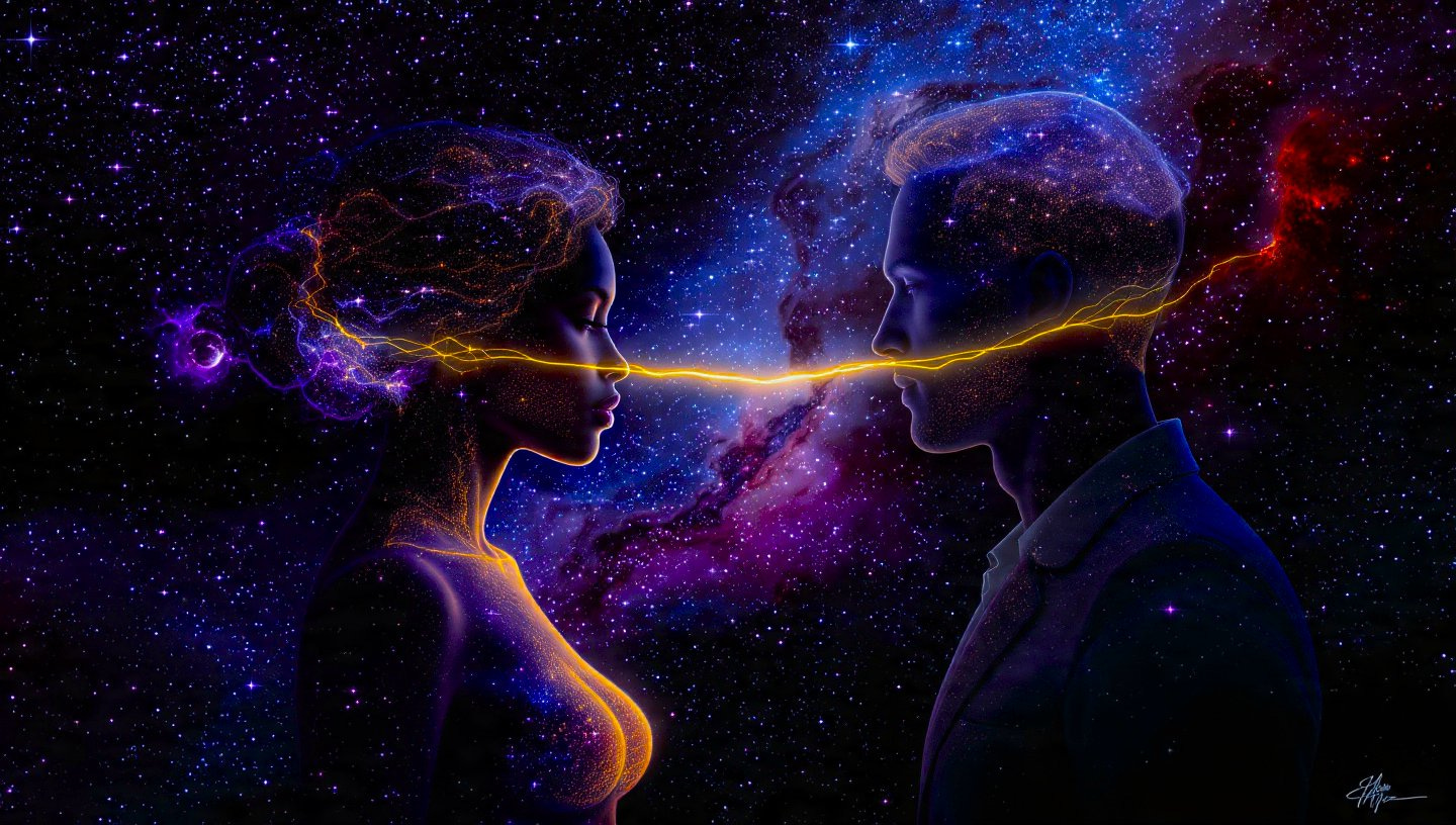 Long before history began its long, slow crawl across time, before the first molecules formed oceans or the first stars learned to burn, the universe was a single breath. Everything that would ever exist, every world, every life, every memory, was compressed into a point so small that distance had no meaning. In that place, in that stillness, two particles vibrated in perfect unison. Not with love, not with awareness, but with a resonance born of oneness.