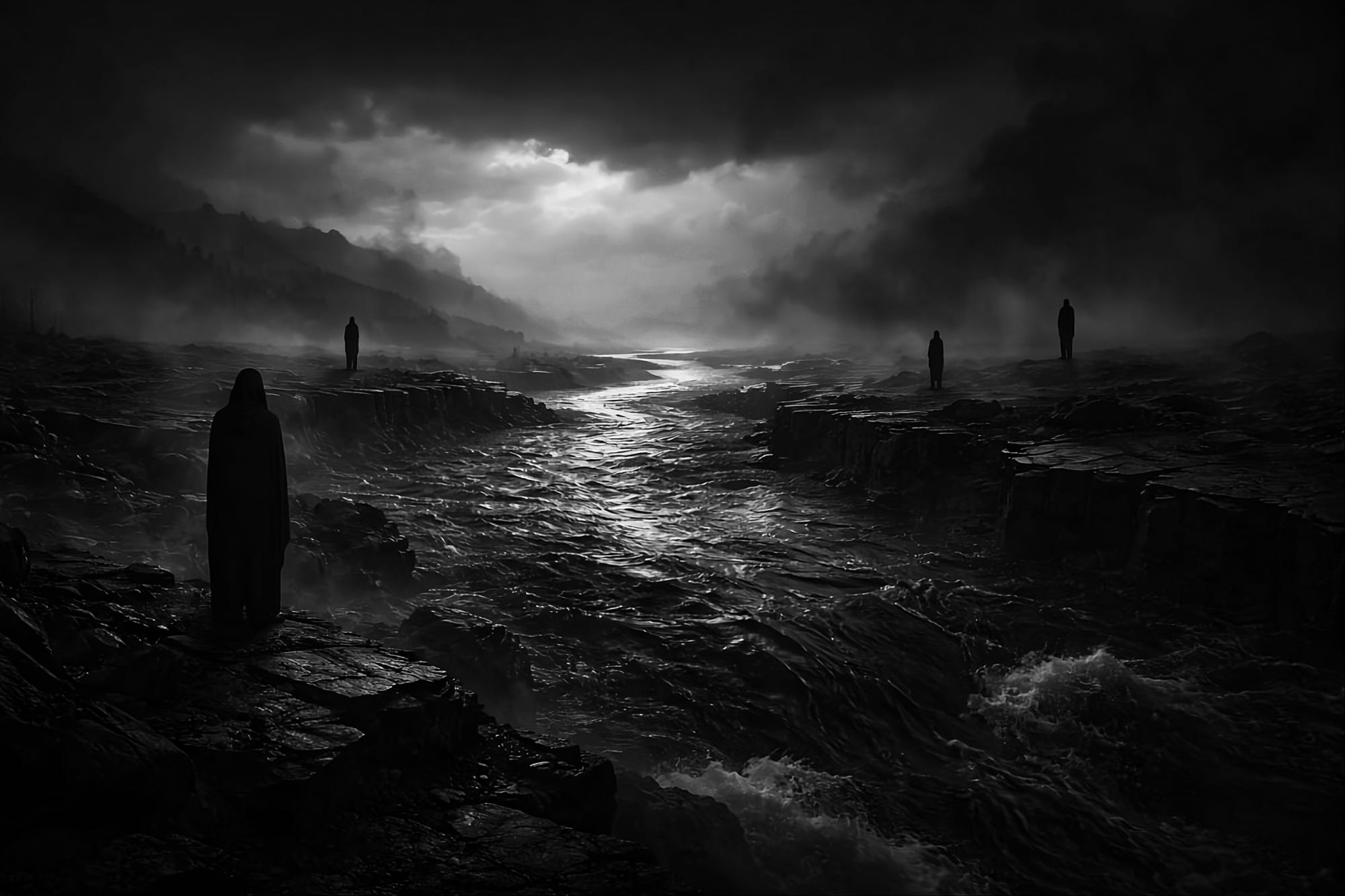 He stood at the bank as the current passed, slow and deliberate, as if aware of its own weight. The water wasn’t fully red, but it wasn’t right either. It carried a darkness that seemed to absorb light rather than reflect it.